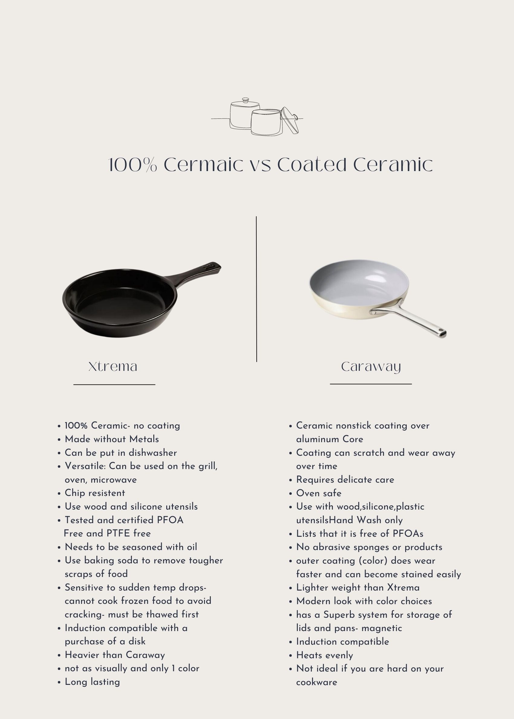 - I put this in the mid level because I actually own Caraway ceramic coated cookware myself along with enamel cookware like Le Creuset and love them both but very cautious about caring for them by not using abrasive cleaning agents or scrubbers, using only wood or silicone utensils. I also avoid high heat because like the others mentioned above, enamel and ceramic coatings can wear easily allowing metals to leach through into your food. They also both scratch easily creating the same open door to leaching. I absolutely love how smart Caraway’s storage system is.